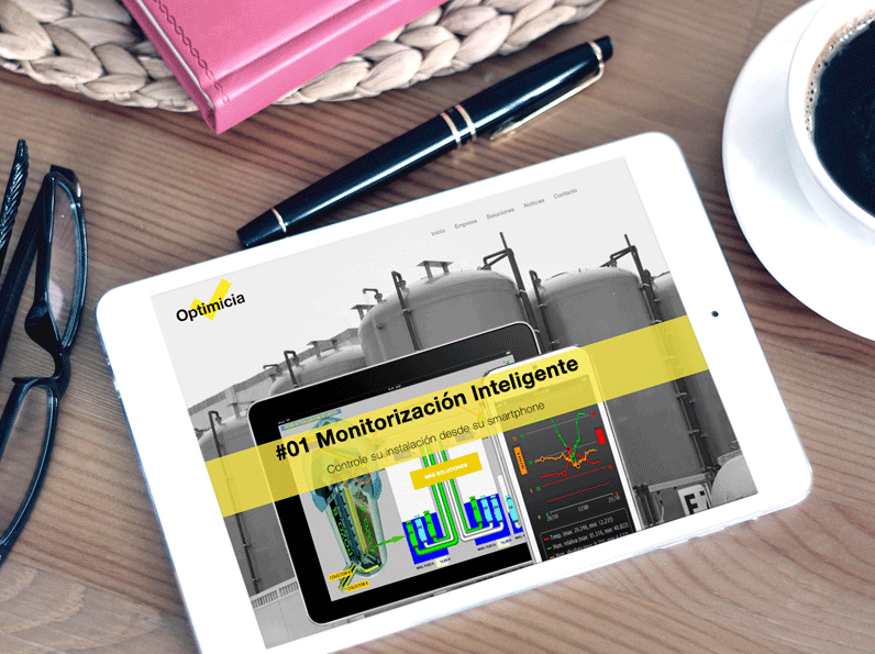 CONCEPTO: Web diseñada para esta empresa que aplica la tecnología a la optimización de procesos, para conseguir la mayor eficiencia y ahorro de costes a través de la automatización y de la telegestión: Optimicia. Trabajo realizado en el marco del estudio KukichaDesign.